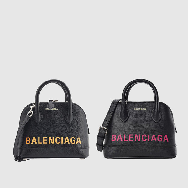 발렌시아가 로고 빌 백 레더 탑 핸드백
