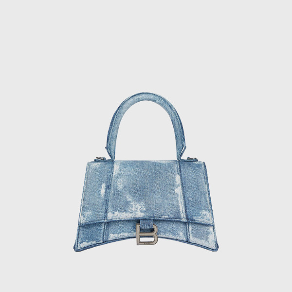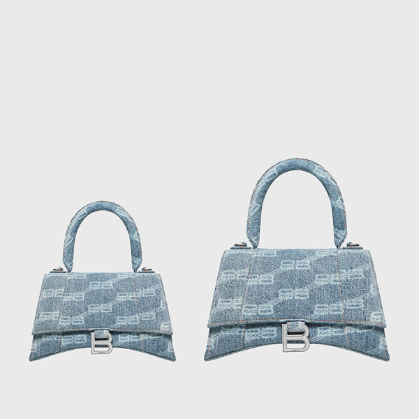 발렌시아가 HOURGLASS BB 모노그램 데님 핸드백