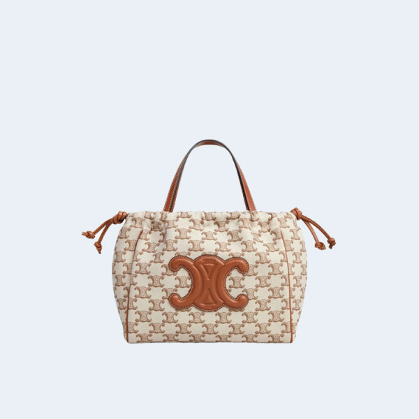 셀린느 트리옹프 드로우스트링 캔버스 백 카프스킨 화이트
