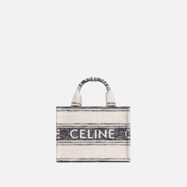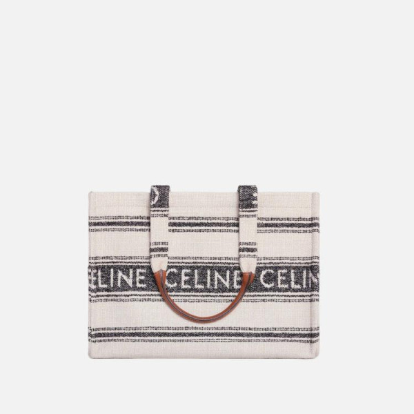 셀린느 로고 자가드 스트라이프 텍스타일 카바스 타이스 토트백