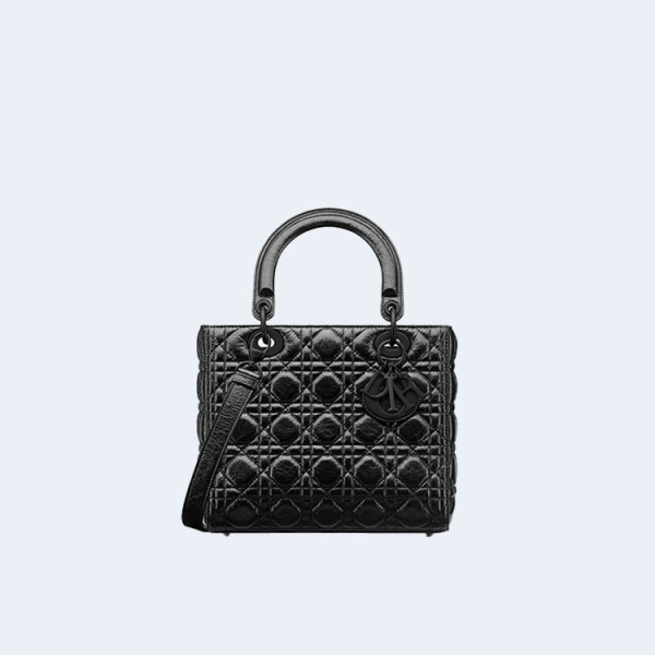 디올 레이디 Dior 블랙 크링클 까나쥬 미디엄 백