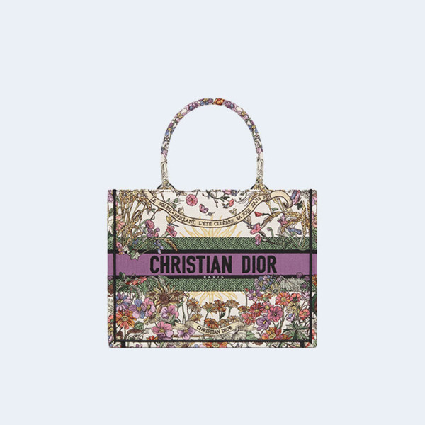 디올 북 에크루 멀티 컬러 자수 토트 미디엄 백