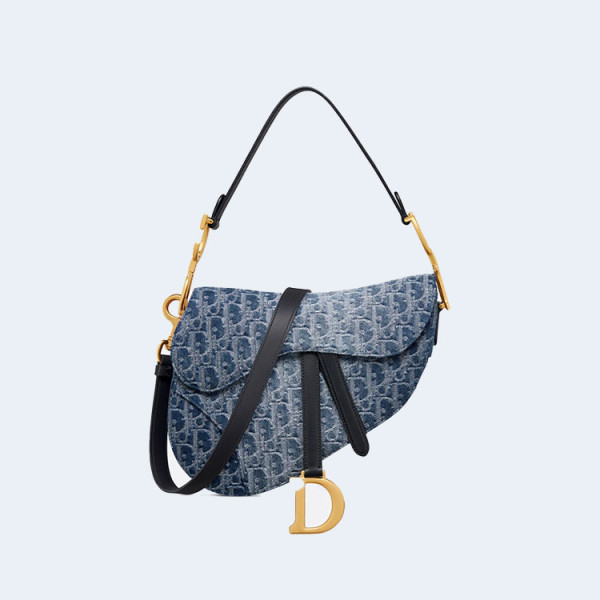 디올 오블리크 자카드 Saddle 스트랩백 데님 블루