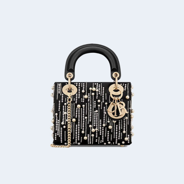 디올 미니 레이디 백 레진 펄 블랙 새틴