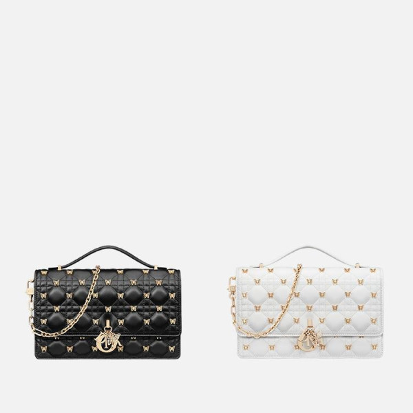 디올 LADY DIOR MILLY 골드 피니시 나비 스터드 스몰 백