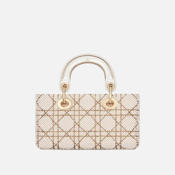 디올 LADY D-JOY 골드 톤 메탈릭 양가죽 & 비즈 자수 마이크로 백