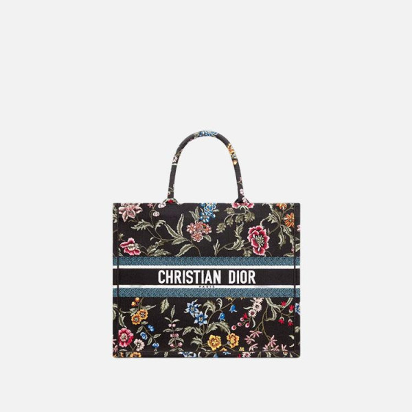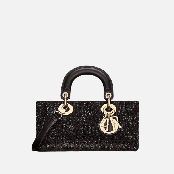 디올 LADY D-JOY 코튼 & 마이크로펄 자수 미디엄 백