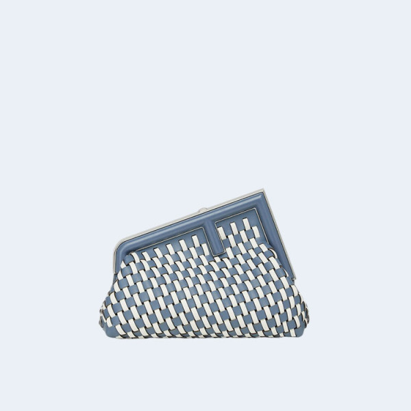 펜디 퍼스트 스몰 화이트 앤 블루 우븐 레더백
