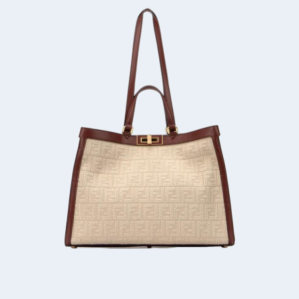 펜디 선샤인 브라운 FF 자카드 패브릭 스몰 쇼퍼백