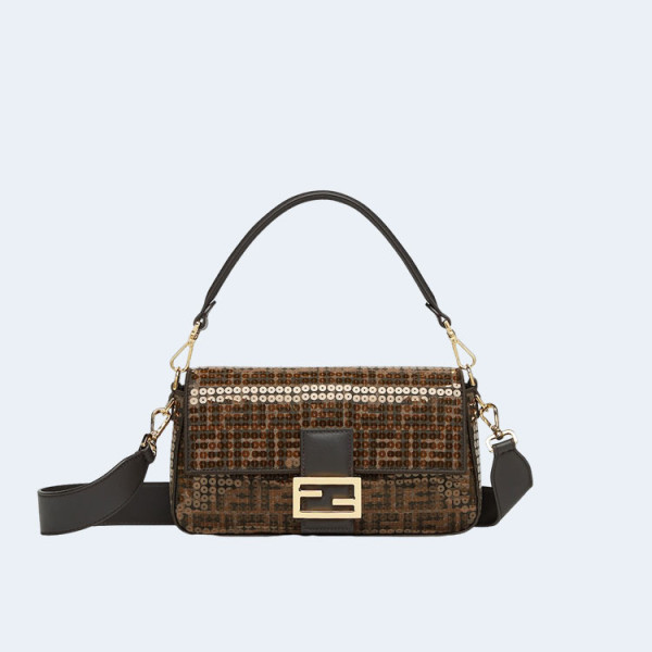 펜디 바게트 FF 자카드 시퀸 패브릭 백