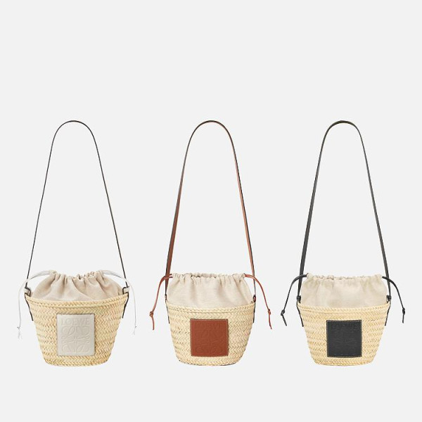 로에베 팜 리프 & 카프스킨 드로우 스트링 내추럴 버킷 백