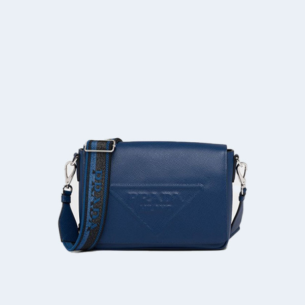 프라다 사피아노 레더 스트랩 숄더백 블루