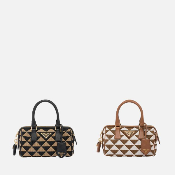 프라다 심볼 자수 패브릭 탑 핸들 백