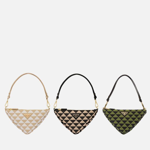 프라다 트라이앵글 페이턴트 가죽 미니 파우치