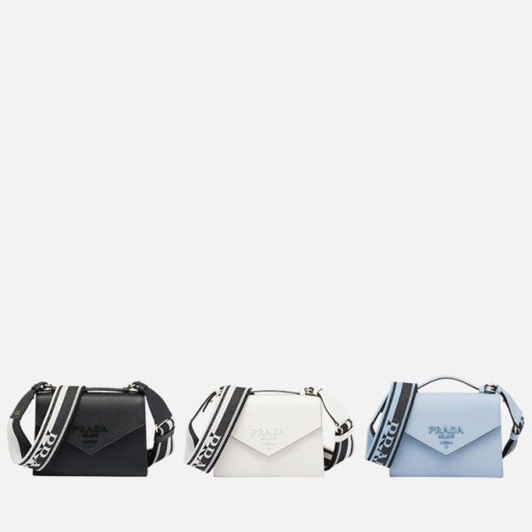 프라다 플래티넘 트라이앵글 사피아노 가죽 숄더백