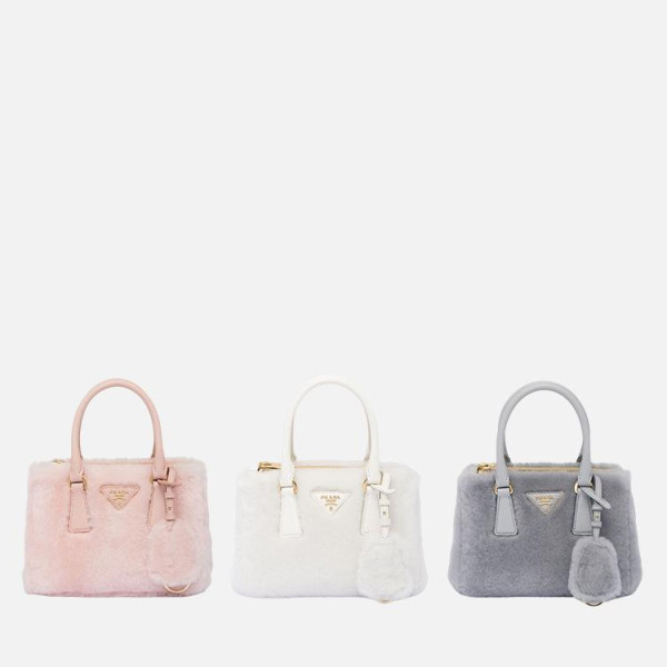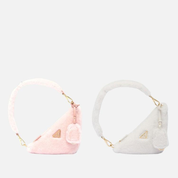 프라다 미니 트라이앵글 로고 시어링 숄더백