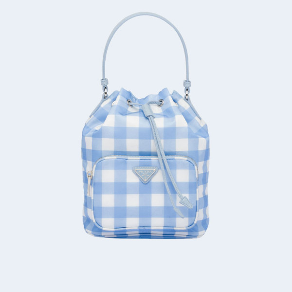 프라다 듀엣 프린트 리나일론 버킷백 블루