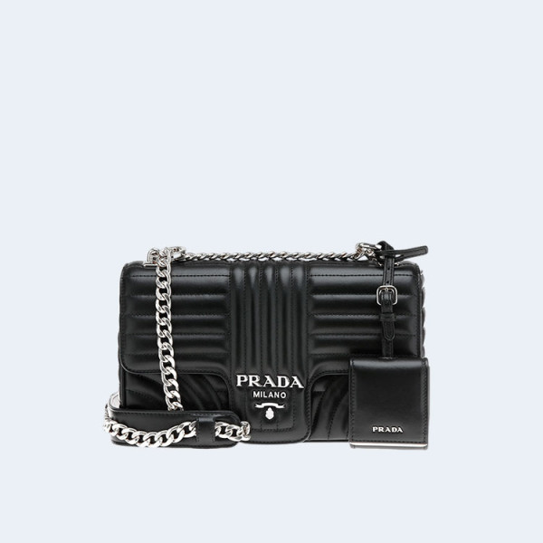 프라다 블랙 다이어그램 은장로고 체인 숄더백