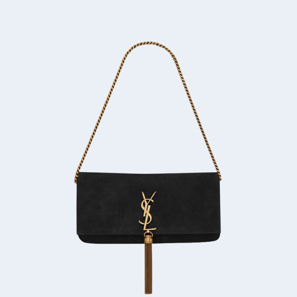 생로랑 크로커다일 케이트 미디엄 태슬 백 블랙 골드