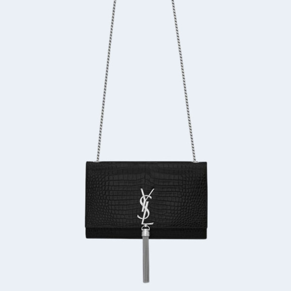 생로랑 크로커다일 케이트 미디엄 태슬 백 블랙 실버