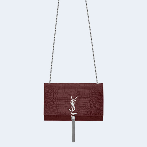 생로랑 크로커다일 케이트 미디엄 태슬 백 와인