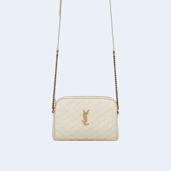 생로랑 퀄티드 GABY 지퍼 파우치 화이트