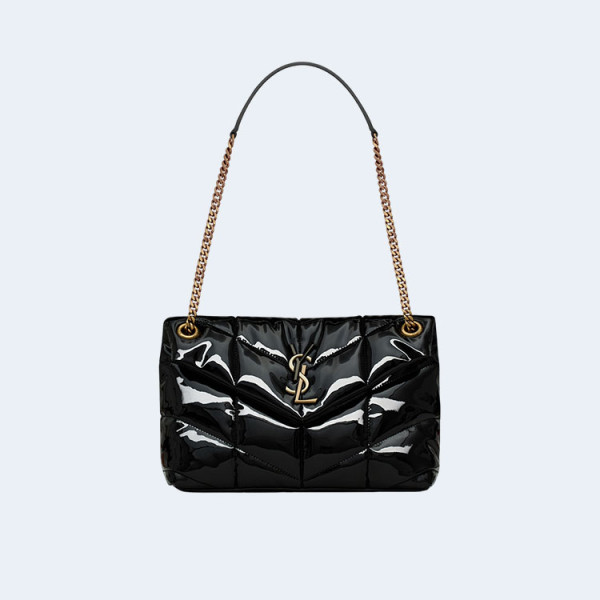 생로랑 모노그램 PUFFER 샤이니 레더 숄더백 블랙 골드