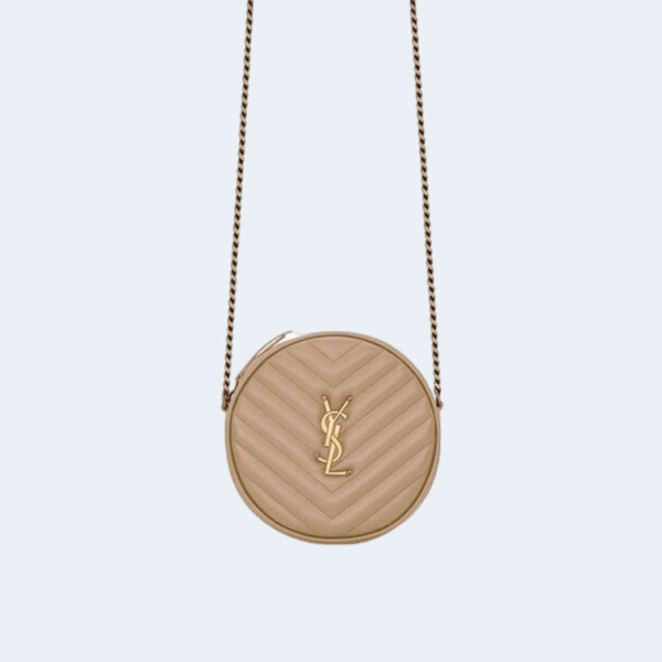 생로랑 쉐브론 라운드 카메라 백 베이지