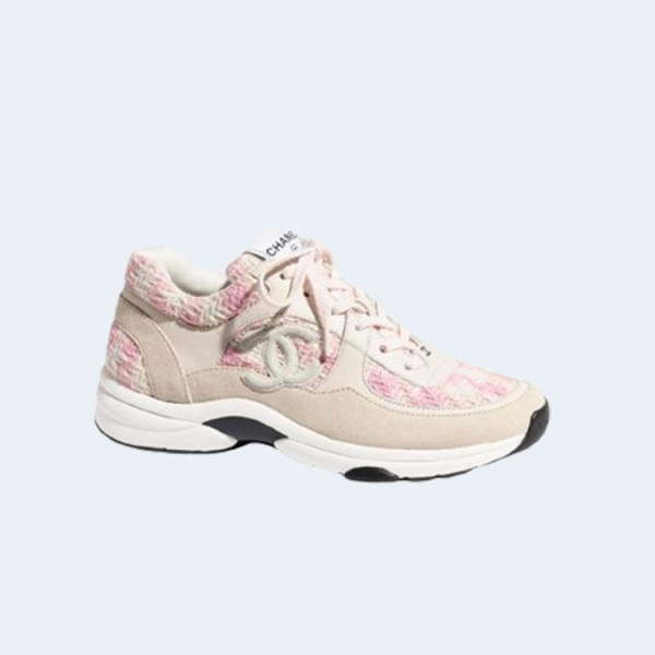샤넬 CC 로고 트위드 스니커즈 핑크