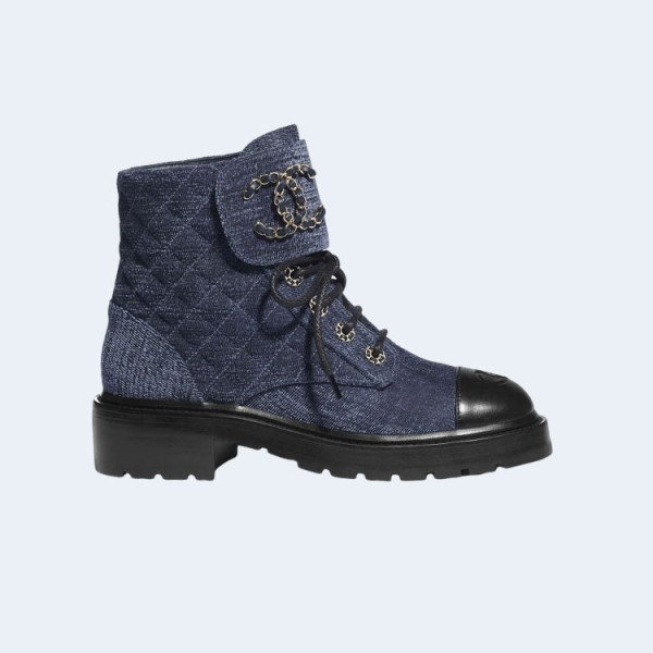 샤넬 레이스업 퀼팅 컴뱃 부츠 데님