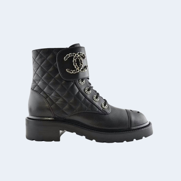 샤넬 레이스업 퀼팅 컴뱃 부츠 블랙
