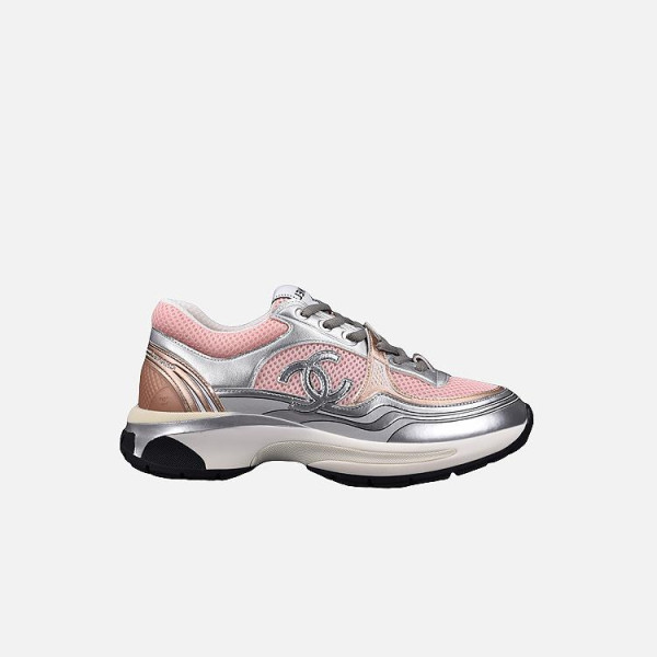 샤넬 CC 로고 샤식스 실버 핑크 테니스 스니커즈