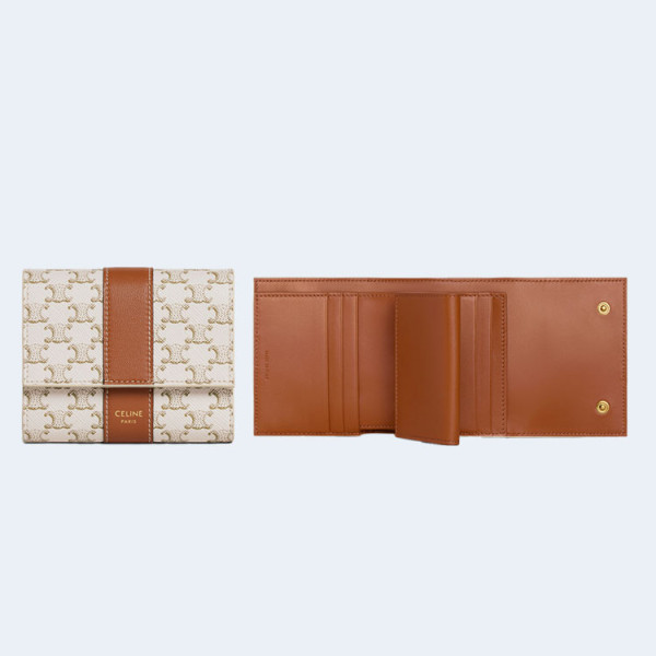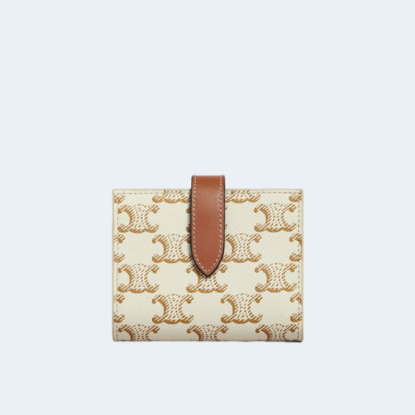 셀린느 트리옹프 캔버스 스몰 3단 지갑 화이트 탠