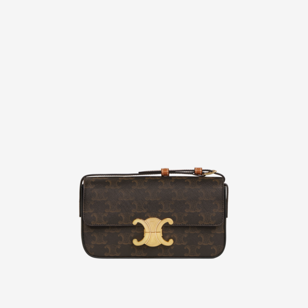 셀린느 트리옹프 캔버스 & 카프스킨 클로드 숄더백 탠
