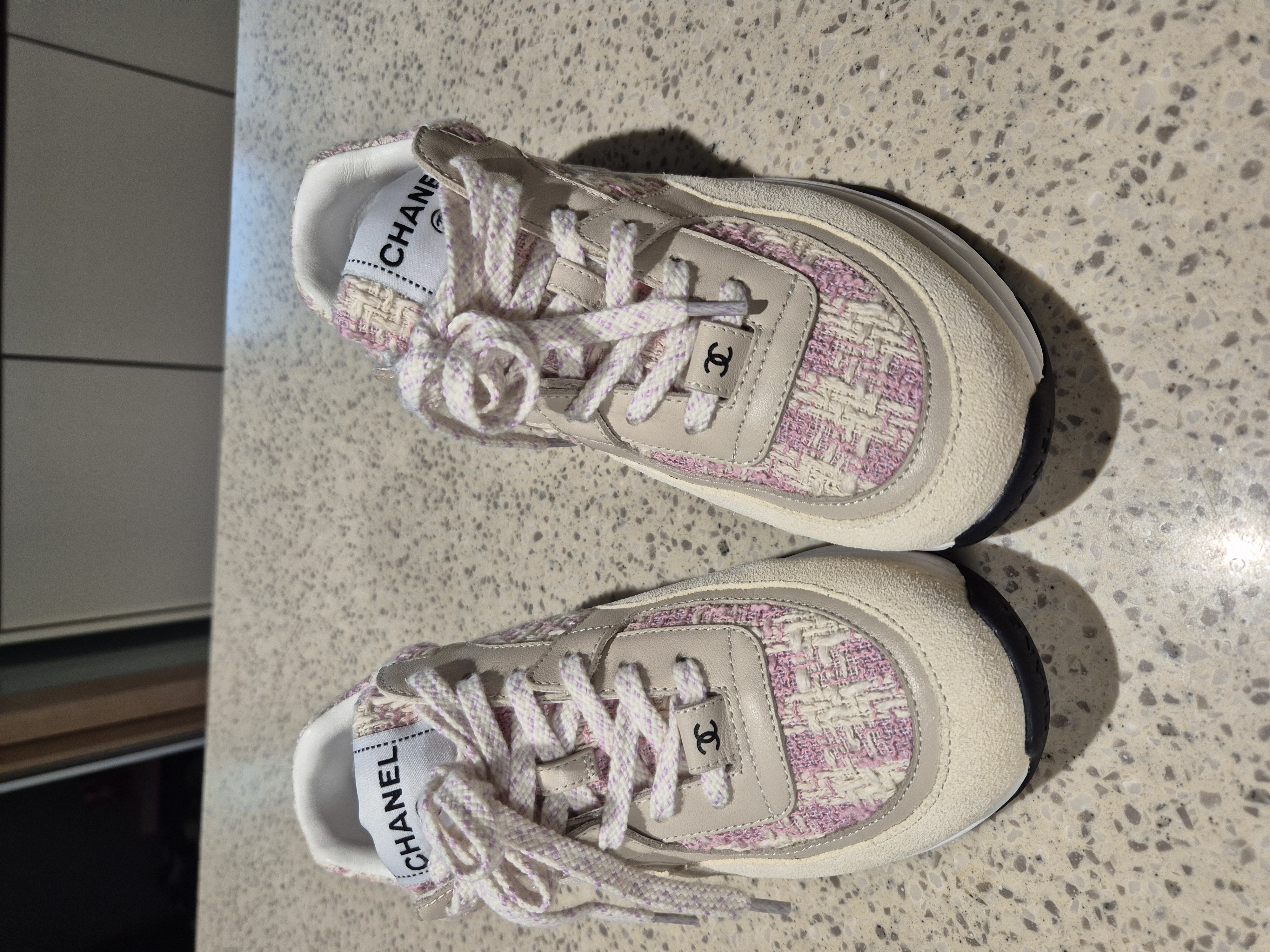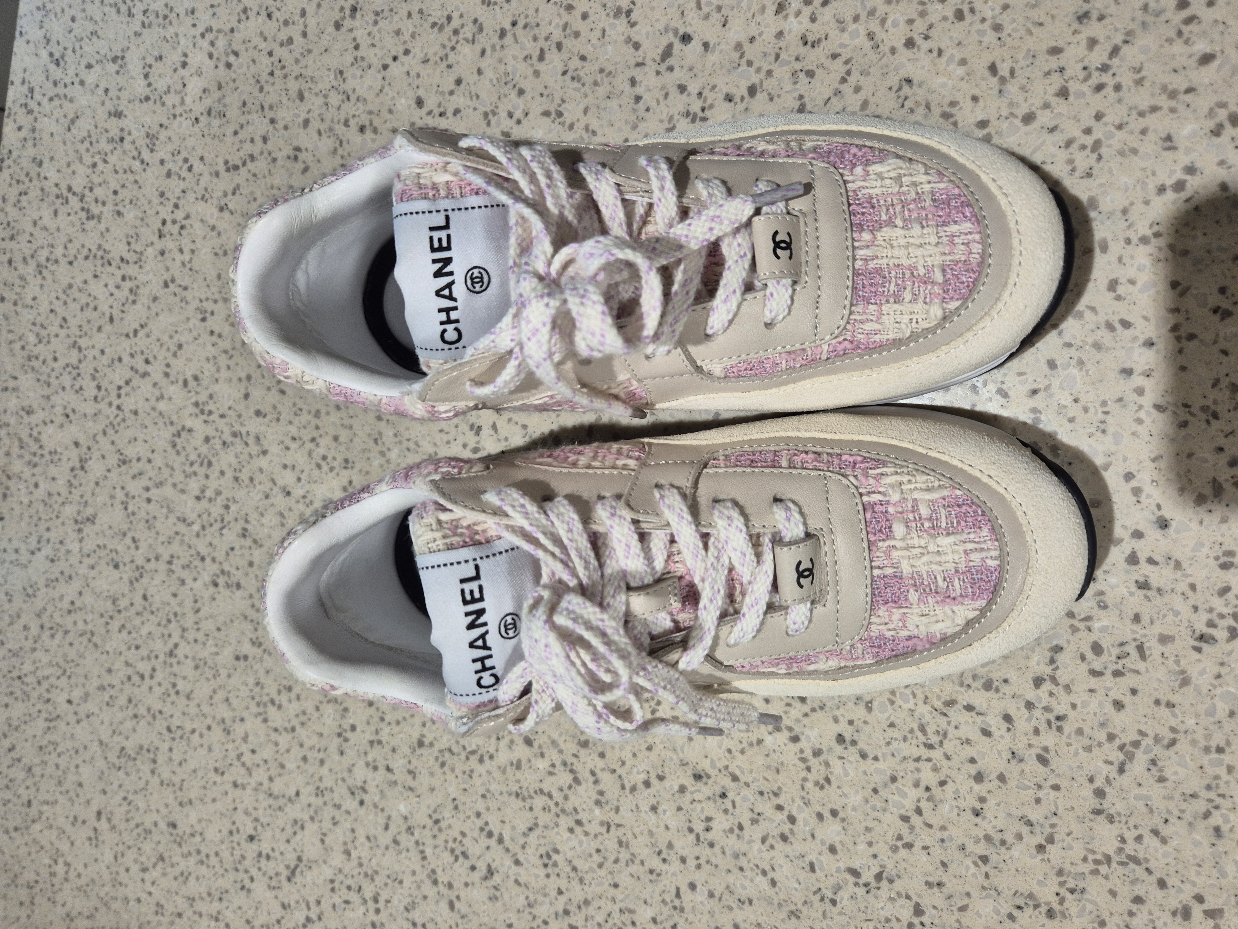 샤넬 메쉬 스웨이드 카프스킨 화이트/블랙 스니커즈