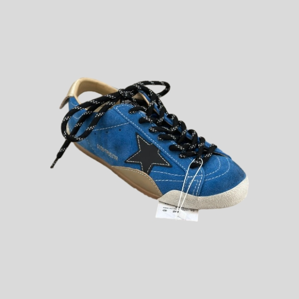 지미추 크리스털 스트랩 디테일 화이트블루 나파 가죽 슬리퍼 스니커즈