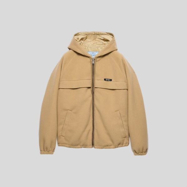 프라다 미디움 웨이트 테크니컬 패브릭 다운 자켓 코르크 베이지