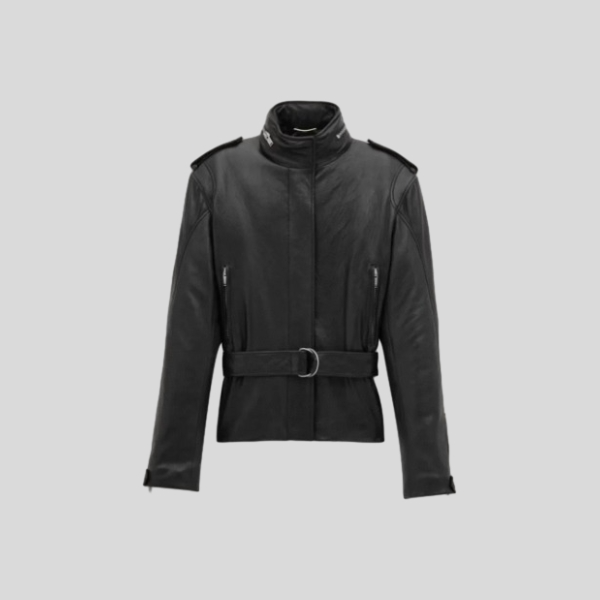 생로랑 벨트 가죽 자켓 브라운