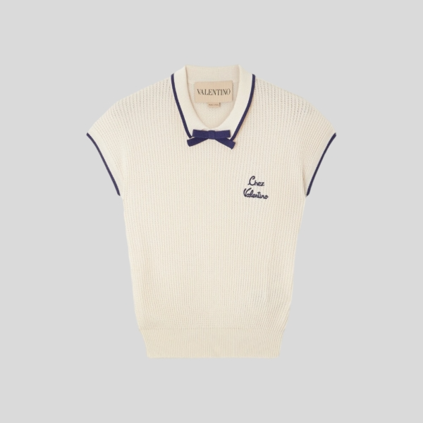 발렌티노 자수 와플 니트 코튼 혼방 폴로 셔츠